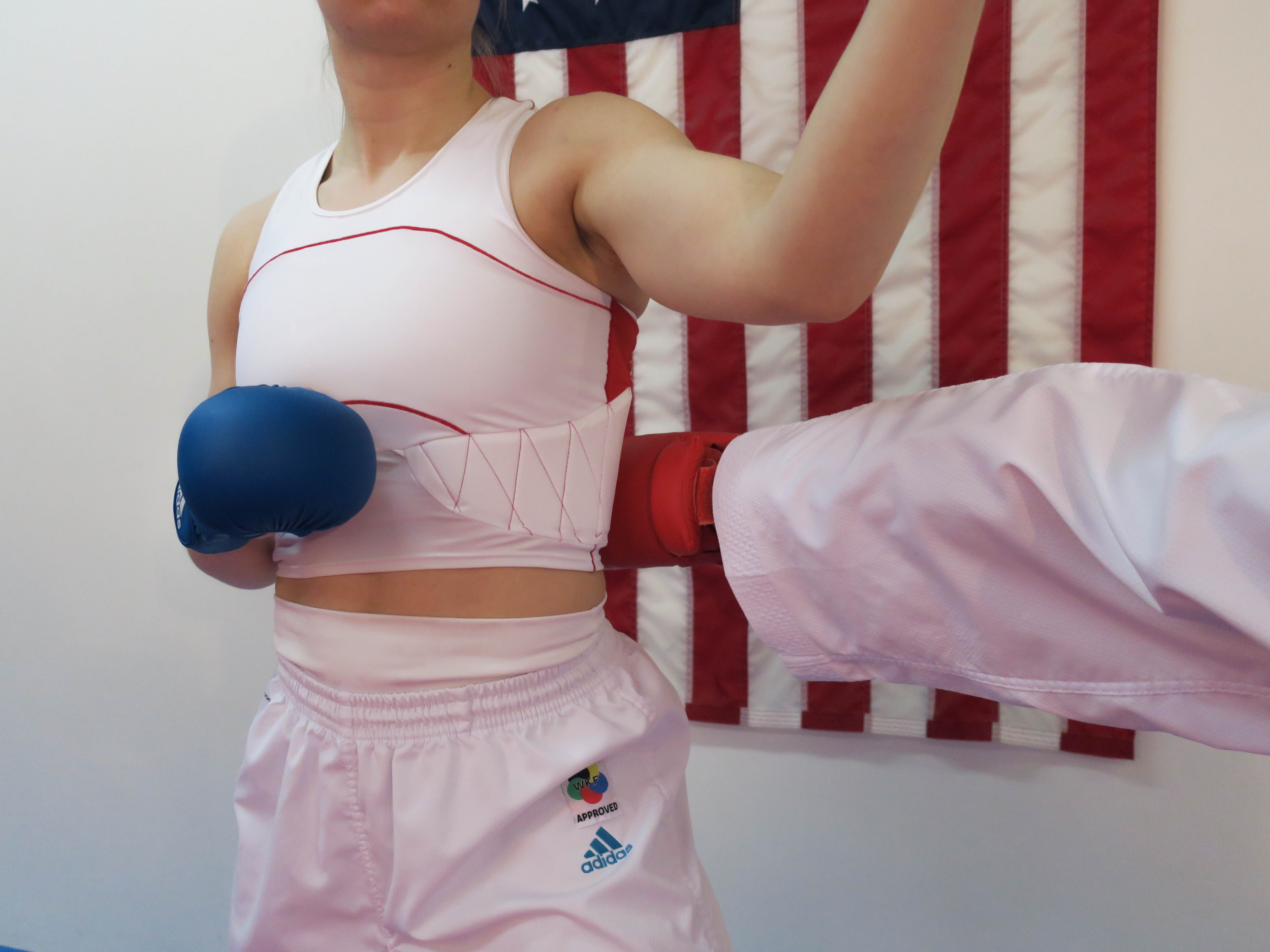 Female karate athletes must wear two pieces of body protection in competition. The pieces are not designed to fit together, making it difficult for athletes to move and perform their best.